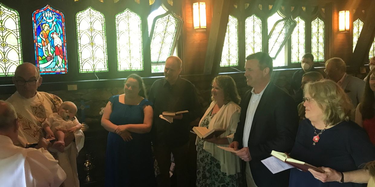 We welcome Nolan Anthony Huitt into Holy Baptism with the fire of the Holy Spirit and the Word of God. Fr. Patrick Gahan holds Nolan as he has just been baptized as one of God’s children and in His Holy Church. Nolan is the youngest grandchild of Ms Susan Martin.